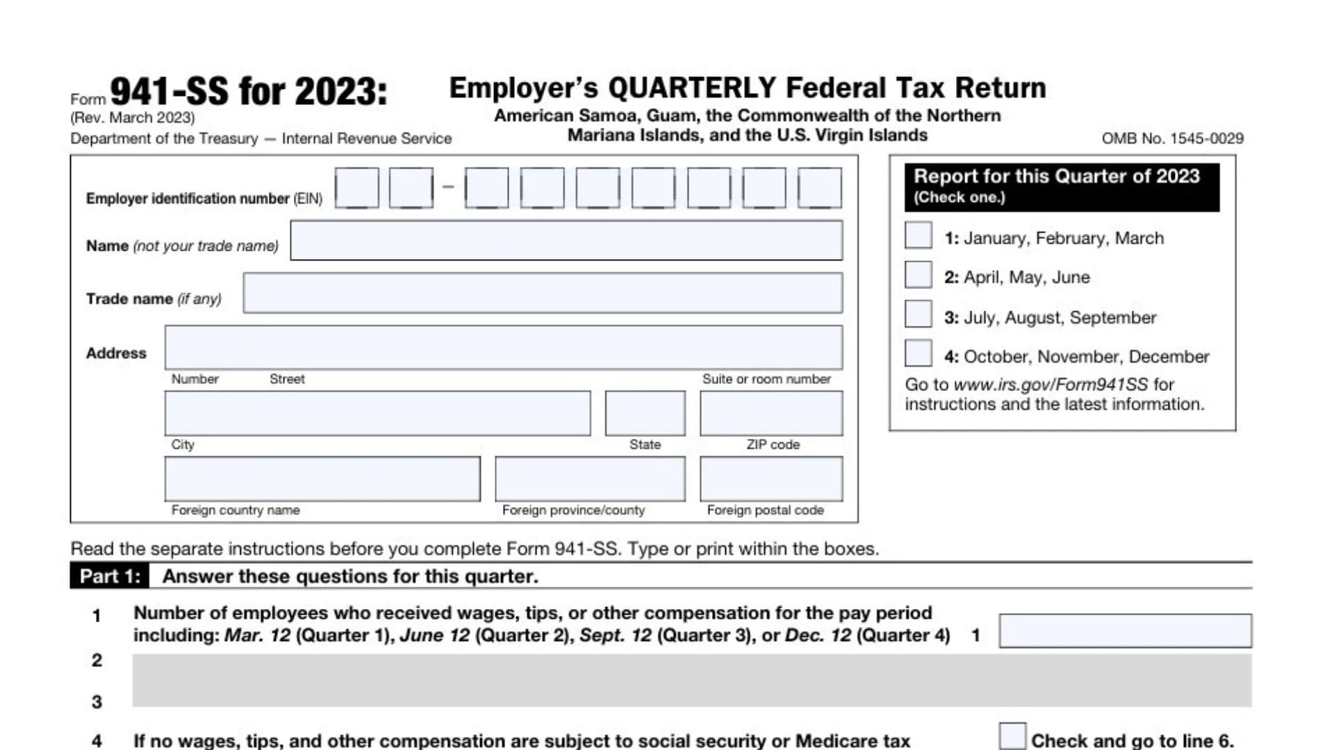 Form 941-SS is the Employer’s Quarterly Federal Tax Return used specifically by employers in American Samoa, Guam, the Commonwealth of the Northern Mariana Islands, and the U.S. Virgin Islands. This crucial tax document allows businesses in these territories to accurately report social security and Medicare taxes withheld from their employees’ paychecks, as well as the employer’s matching portion of these taxes. Unlike the standard Form 941 used in the mainland United States, which includes reporting for federal income tax withholding, Form 941-SS focuses exclusively on social security and Medicare liabilities, as well as certain payroll tax credits for qualified sick and family leave or research activities. Employers must file this form every quarter to maintain compliance with federal tax laws, calculate their total tax liability, declare their deposit schedules, and ensure they are neither underpaying nor overpaying their employment taxes.