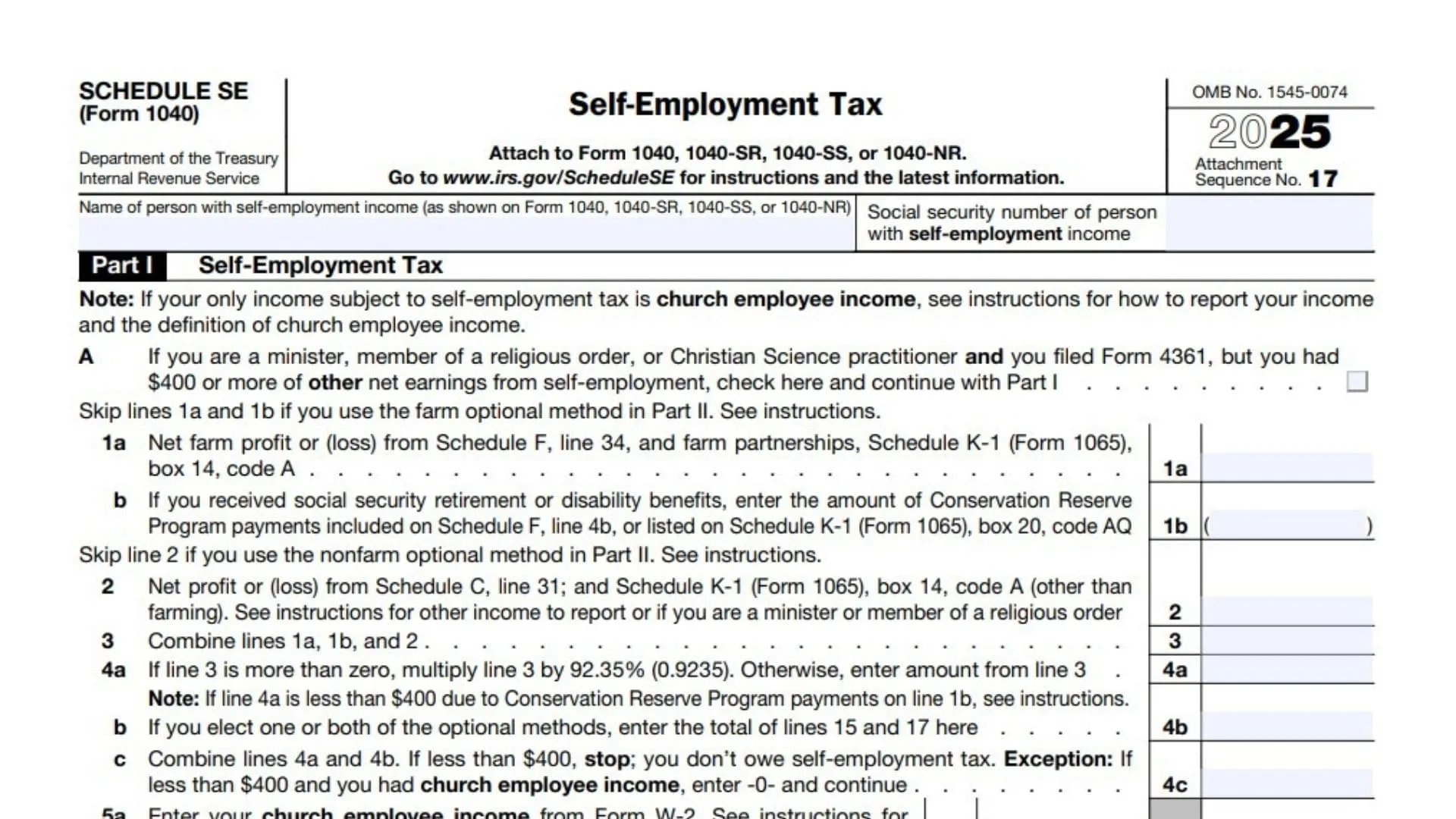 The IRS Schedule SE is a vital tax form used by independent contractors, freelancers, and small business owners to calculate their self-employment tax, which encompasses both Social Security and Medicare taxes. Unlike traditional employees whose employers withhold these taxes automatically from their paychecks, self-employed individuals must calculate and pay these obligations themselves based on their net earnings. If your net earnings from self-employment were $400 or more during the tax year, or if you earned church employee income of $108.28 or more, you are generally required to file this schedule alongside your Form 1040, 1040-SR, 1040-SS, or 1040-NR. Filing the Schedule SE is crucial not only for staying compliant with federal tax laws but also for ensuring that you are credited within the Social Security system, which ultimately determines your eligibility for retirement, disability, and survivor benefits. The form consists of two main sections: Part I for the standard calculation of self-employment tax, and Part II, which offers optional methods for figuring net earnings if your profits were unusually low or you operated at a loss.